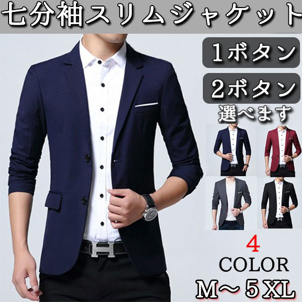 【セール】即納 安い メンズ ジャケット テーラードジャケット 七分袖 細身 スリム 薄手 スーツジャケット 大きいサイズ 春 夏...