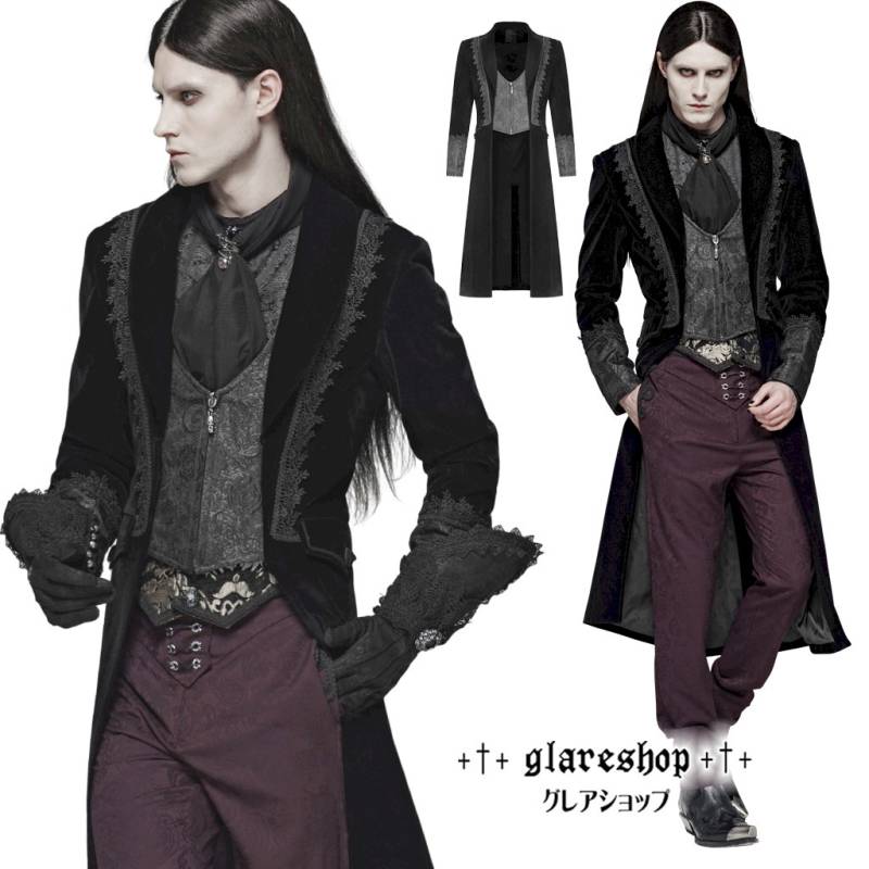 glareshop グレアショップ「M.S-M.5XL」JX577-B■ゴシック コート ミドル丈 レイヤード風 黒 ブラック メ...