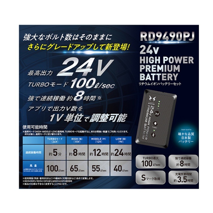 【在庫一掃セール!】rd9490pj サンエス 空調風神服 リチウムイオンバッテリー バッテリーセット