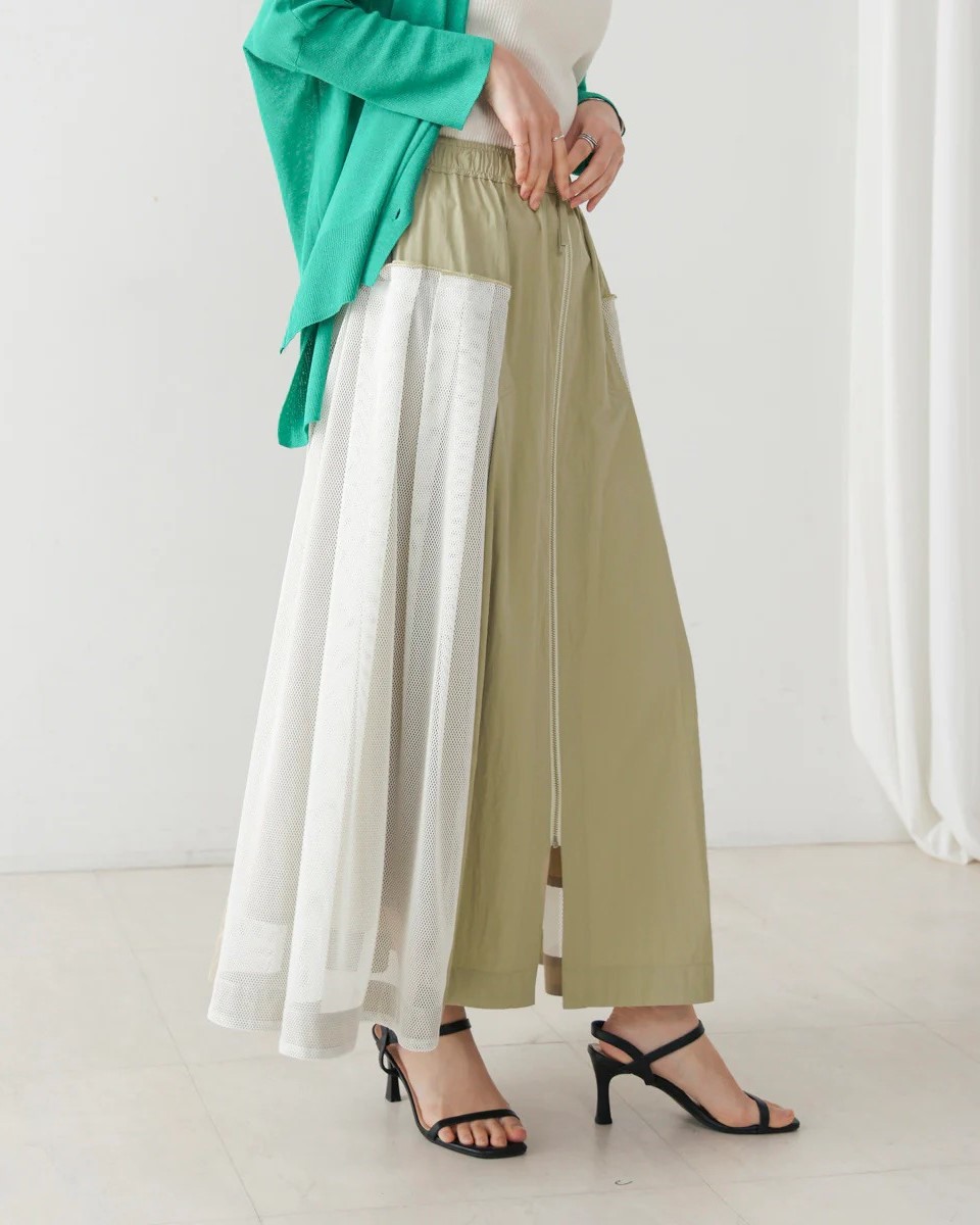 Aライン 中綿入り キルティング ミモレ丈 オーバースカート