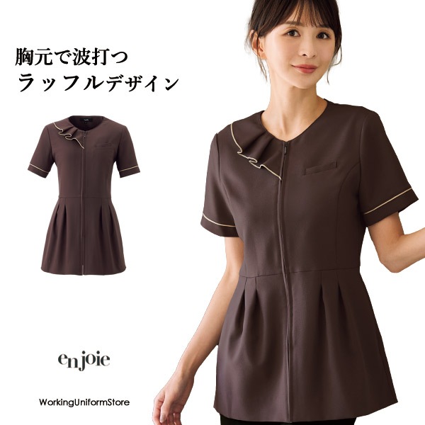 エステ制服ユニフォーム 半袖チュニック 46550 リップルニット アンジョア コスメ 美容クリニック 受付