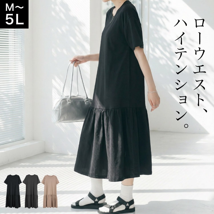 ワンピース 裾ティアード 半袖 ロング丈 綿100% レディース 春 夏 ルームウェア 部屋着 ワンマイルウェア ティアード ロン...