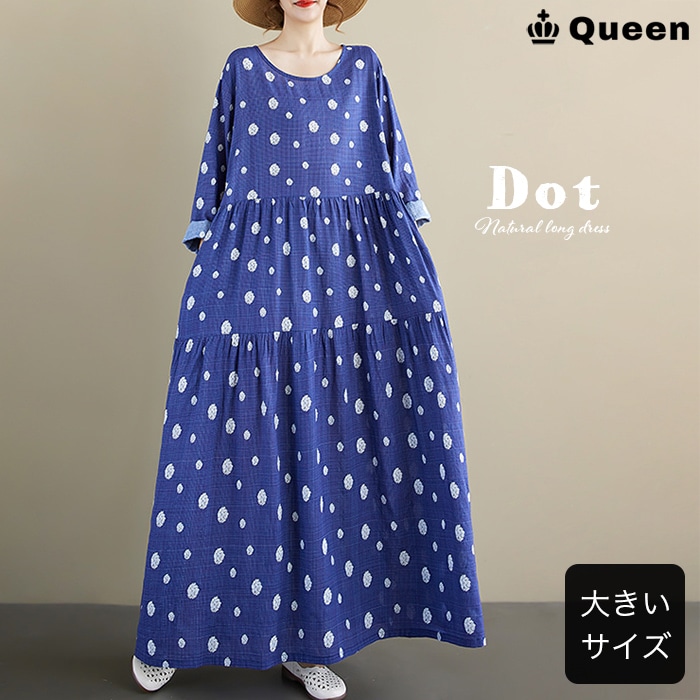 手描き風ドットティアードマキシワンピース (15023)