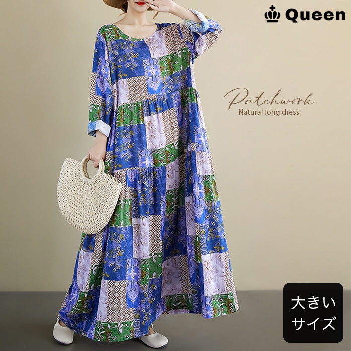 パッチワーク柄ティアードマキシワンピース (15016)