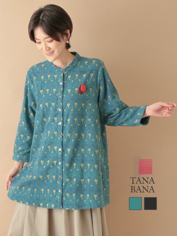 【50%OFF】各色1点限り/幾何学ブロックプリント起毛コットン ロングシャツ 22W456