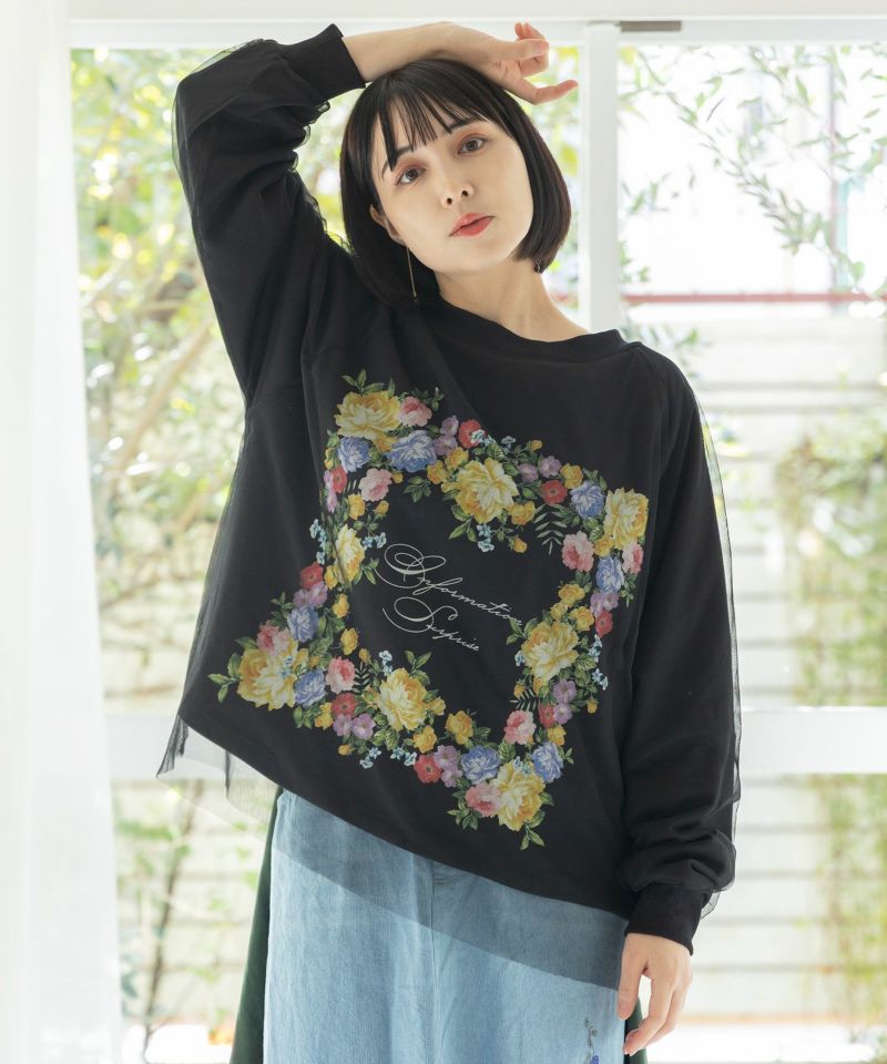 イズスカラー / 花柄チュール重ね裏毛プルオーバー