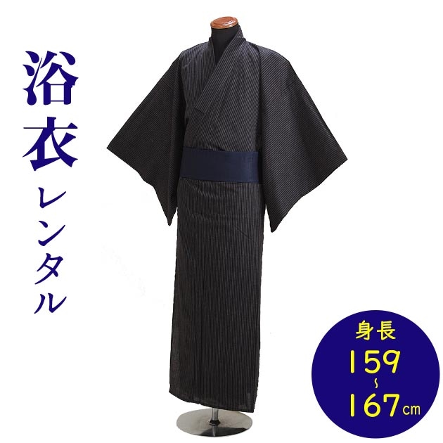 【浴衣 メンズ レンタル】ゆかたレンタル 3点セット☆浴衣・帯・下駄☆nt-my131 黒色/縞