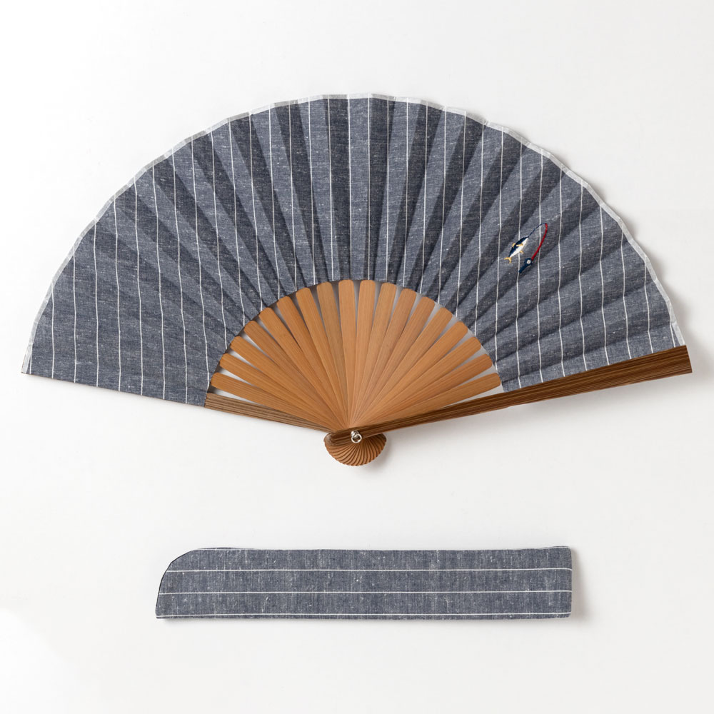 ホビー刺繍扇子セット2020 フィッシング 刺繍入り布貼り扇子 扇子袋付き 男性向け スーベニール Sensu fan