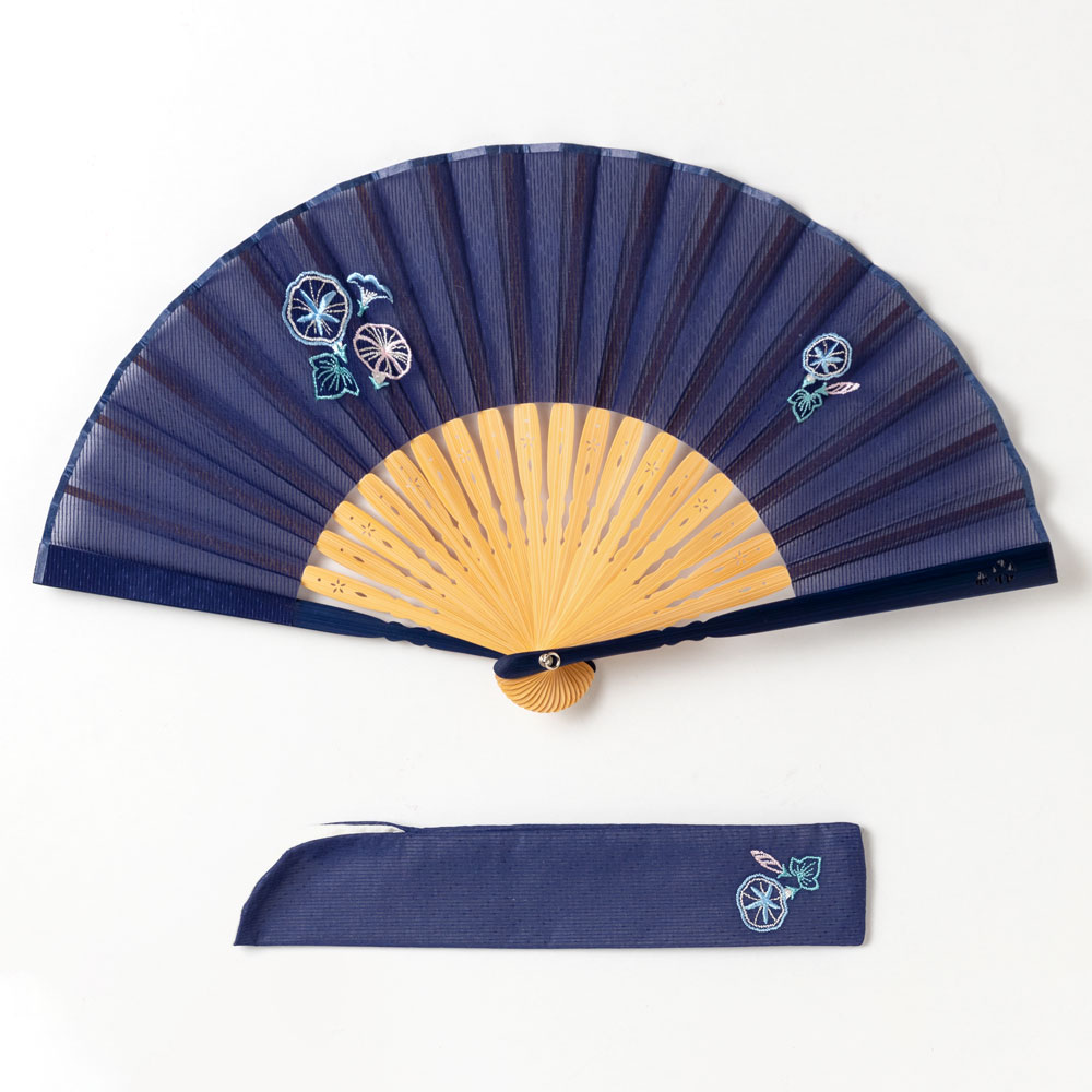 花刺繍扇子セット2020 朝顔 刺繍入り布貼り扇子 扇子袋付き 女性向け スーベニール Sensu fan