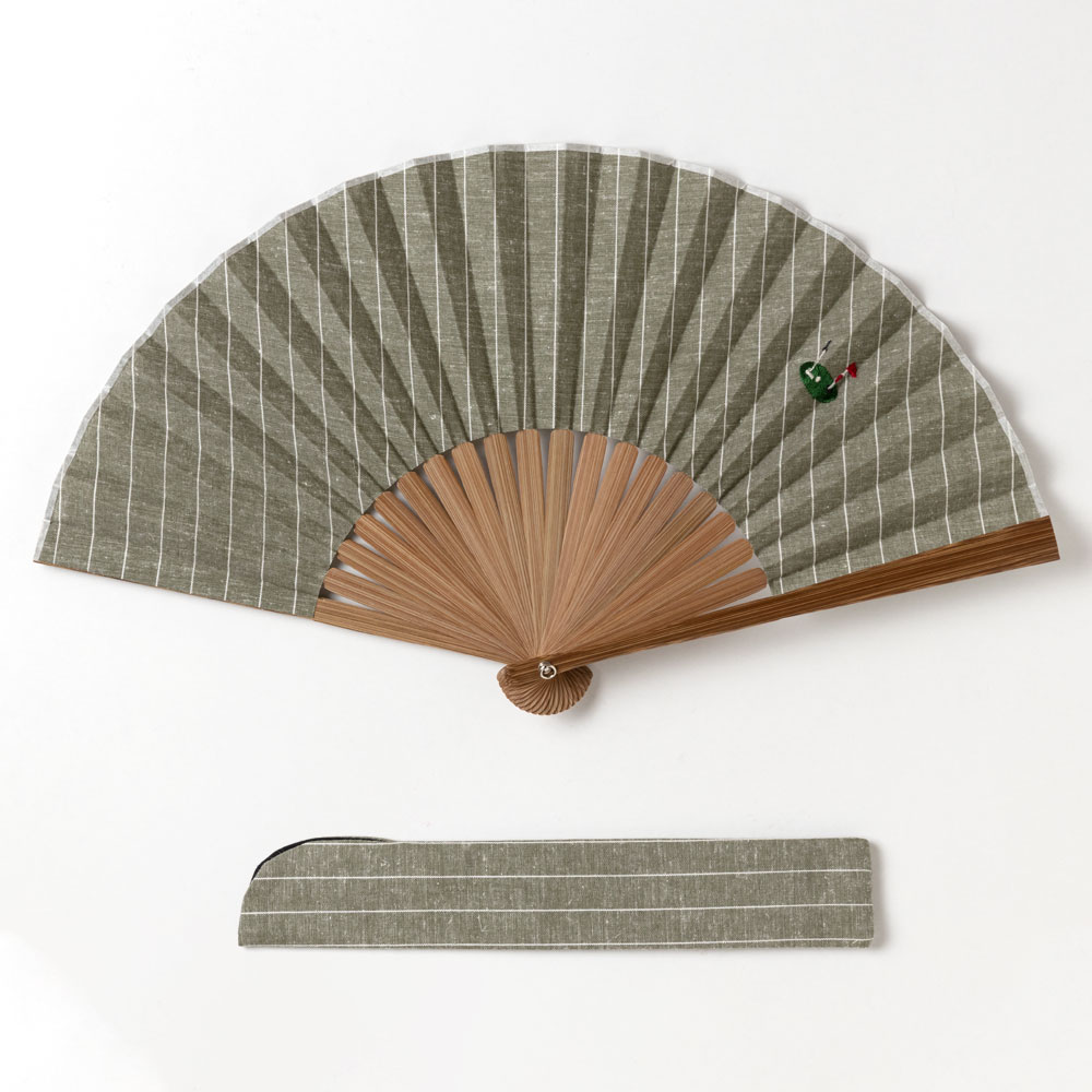 ホビー刺繍扇子セット2020 ゴルフ 刺繍入り布貼り扇子 扇子袋付き 男性向け スーベニール Sensu fan
