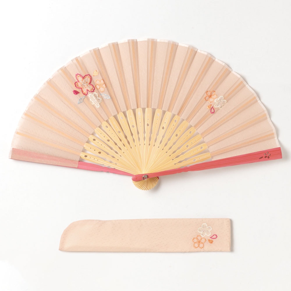 花刺繍扇子セット2020 桜 刺繍入り布貼り扇子 扇子袋付き 女性向け スーベニール Sensu fan