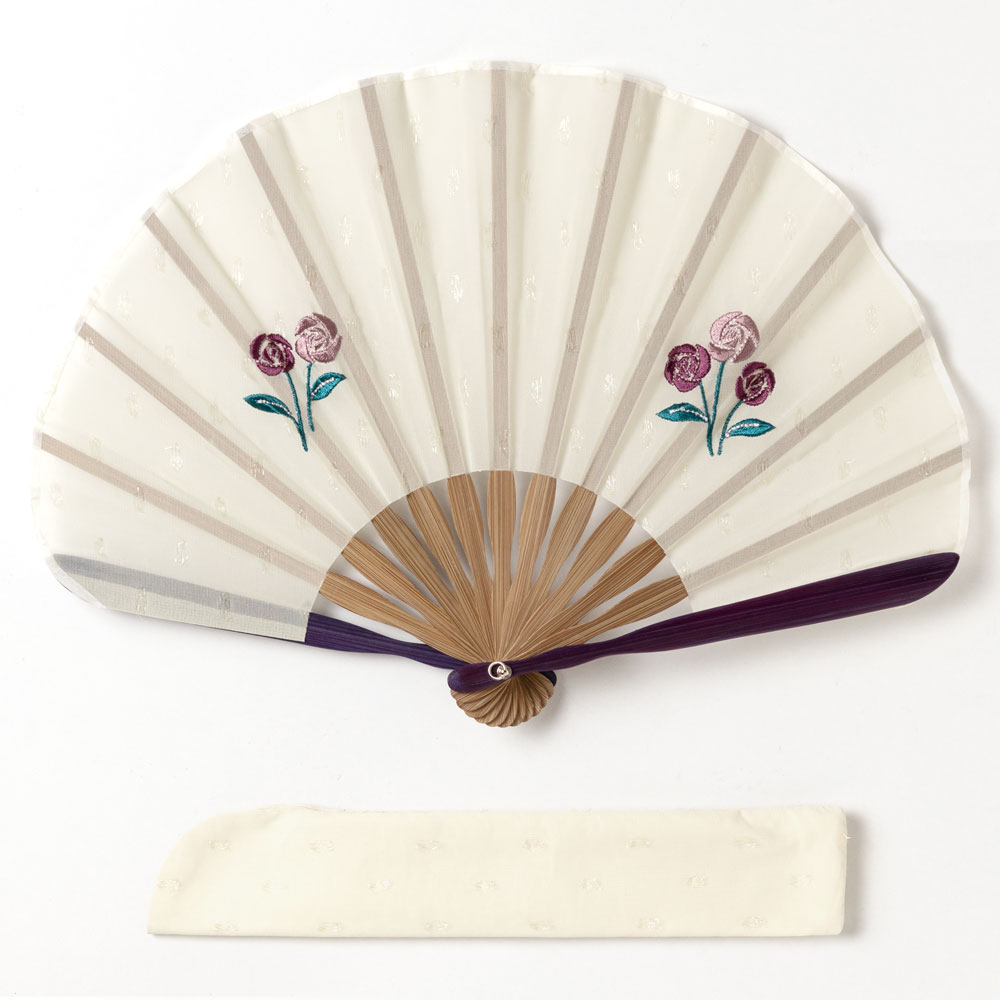 ガーデン刺繍扇子セット2020 バラ 刺繍入り布貼り扇子 扇子袋付き 女性向け スーベニール Sensu fan