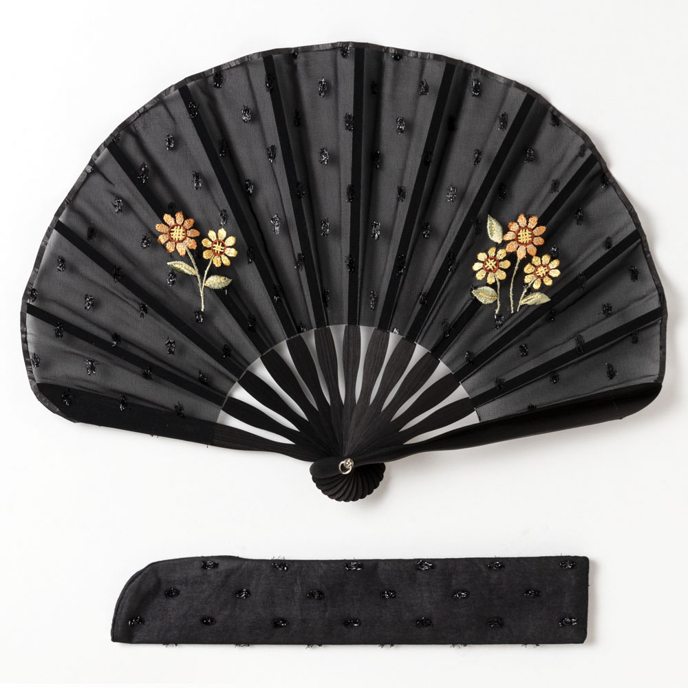 ガーデン刺繍扇子セット2020 ヒマワリ 刺繍入り布貼り扇子 扇子袋付き 女性向け スーベニール Sensu fan