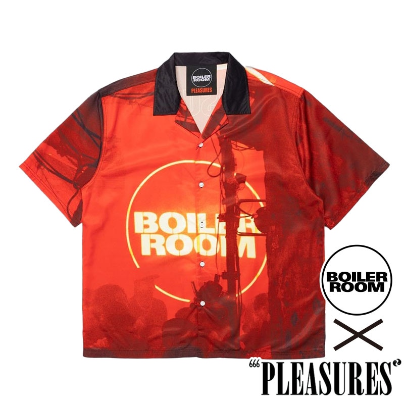 【PLEASURES/プレジャーズ×BOILER ROOM】VENUE BUTTON UP 半袖シャツ / RED