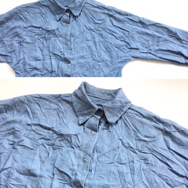 アメリカ古着 長袖シャツ ウエスタンシャツ 送料無料 レディース L-XL/ブルー ドルマンスリーブ シャツジャケット シャンブレ...