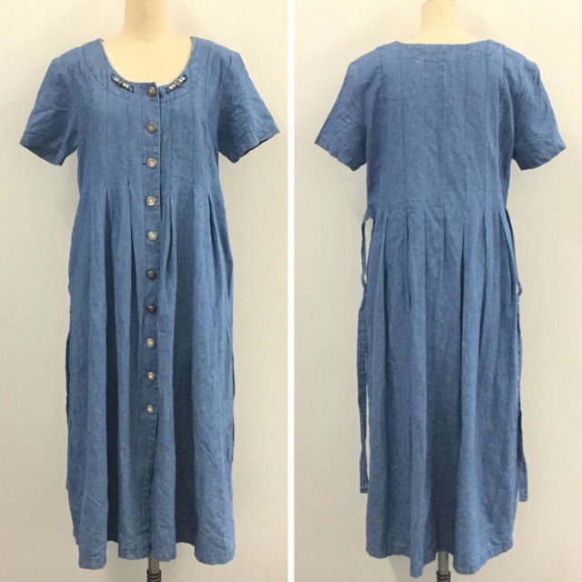 アメリカ古着 デニムワンピース 半袖ドレス 送料無料 レディース 10/デニムブルー 前開き ガウン コート カジュアル カントリ...