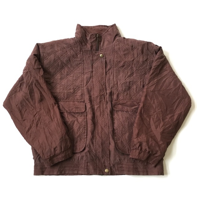 LAVON シルクジャケット アメリカ直輸入 ウィンドブレーカー 送料無料 レディース M/茶系 キルティング silk USA ...