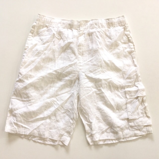 アメリカ直輸入 ショーツ ハーフパンツ 送料無料 メンズ W34/白・ホワイト リネン 麻 短パン イージーパンツ カジュアル U...