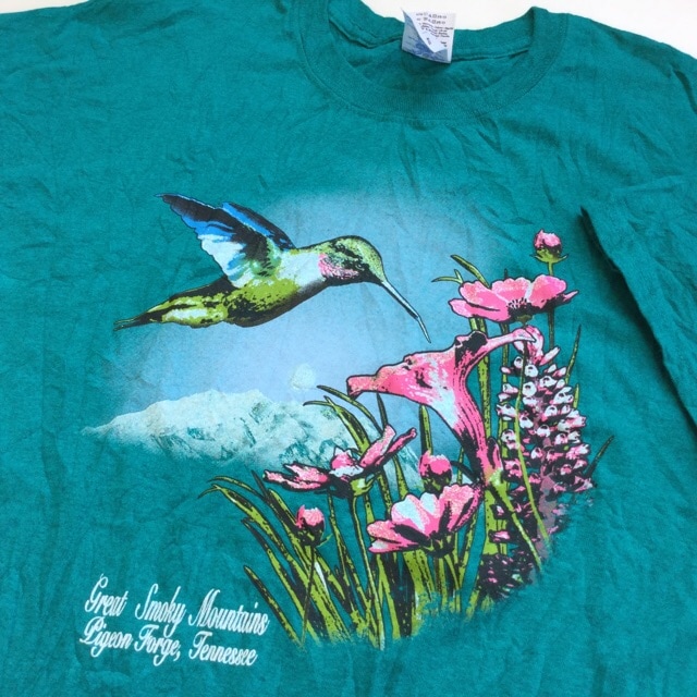 アメリカ古着 ハチドリ 半袖Tシャツ 送料無料 メンズ XL/杢グリーン フラワー 花柄 ラメ アメリカ直輸入 風景 アメカジ 古...