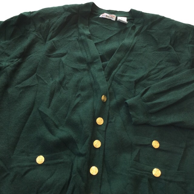 Talbots ウールカーディガン ニットセーター アメリカ直輸入 レディース XL/ダークグリーン・深緑 金ボタン トラッド カ...