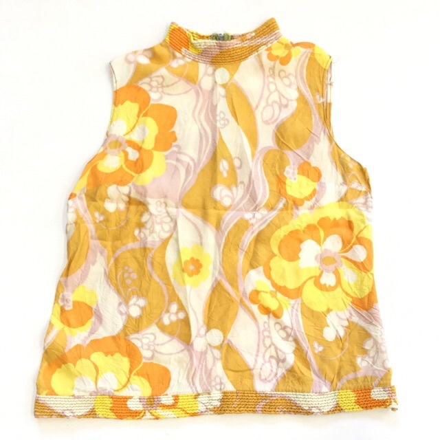 アメリカ古着 ノースリーブ カットソー 送料無料 レディース M程度/黄色系 総柄 花柄 ハイネック カジュアル アメカジ レトロ...