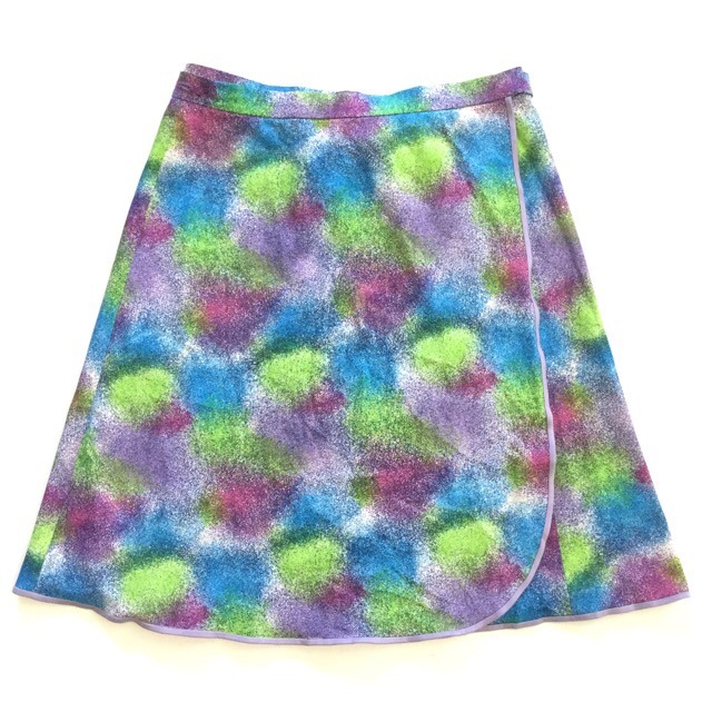 国内古着 巻きスカート ラップスカート 送料無料 レディース フリー/青x緑x紫系 ハンドメイド 膝丈 古着卸 業販 HAND M...