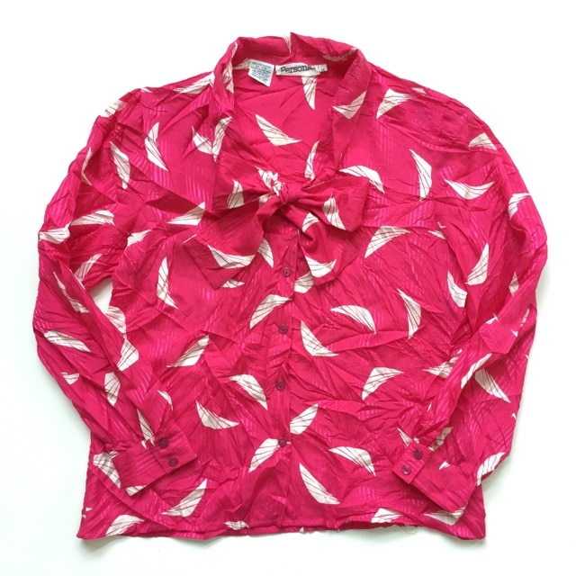 Personal 長袖ブラウス ボウタイブラウス アメリカ直輸入 ポリシャツ 送料無料 レディース 14/ピンクxホワイト 総柄 ...