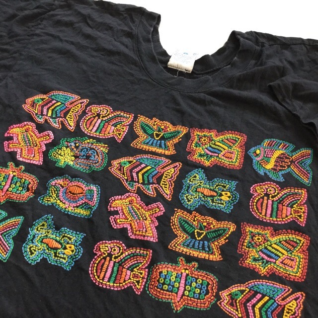 アメリカ古着 半袖Tシャツ チュニック 送料無料 レディース フリー/黒・ブラック ビッグTシャツ アメカジ ビーズ調 アニマル ...