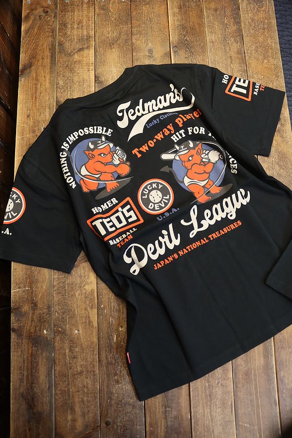エフ商会 TEDMAN テッドマン TDSS-566 RED DEVIL ロゴデザイン コットンTシャツ ブラック