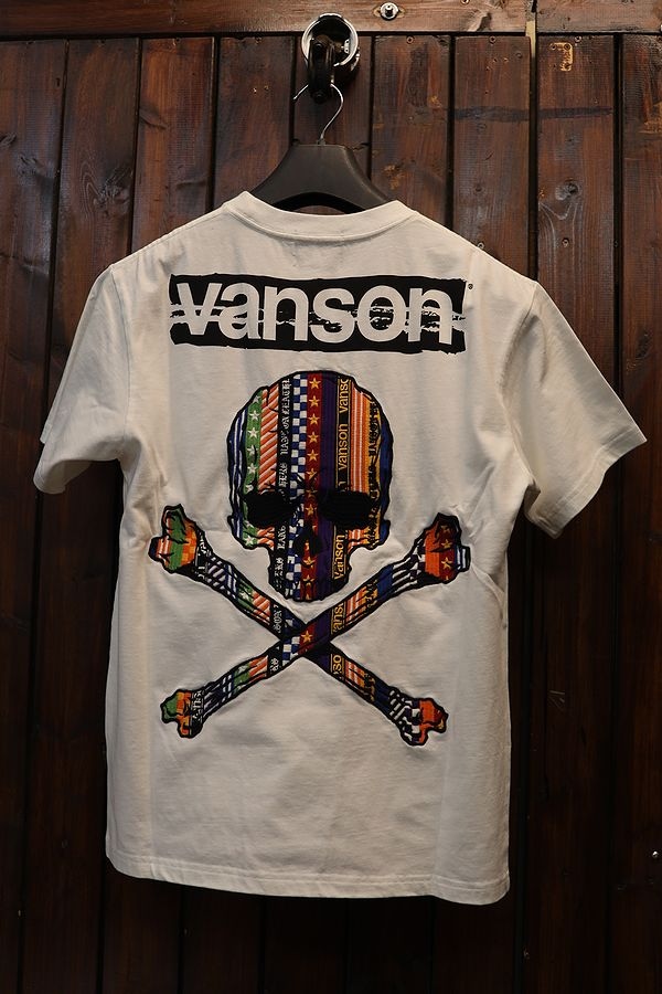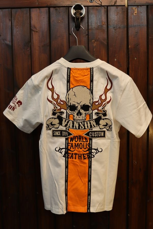 VANSON バンソン NVST-2312 天竺半袖Tee 刺繍スカルTシャツ オフホワイト
