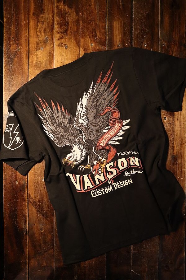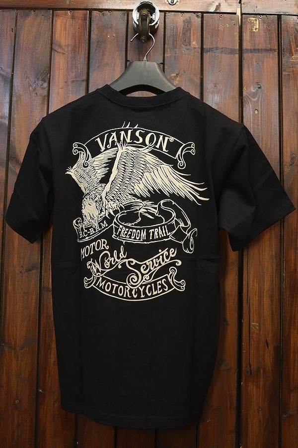 VANSON バンソン NVST-2301 天竺半袖Tee 天竺半袖Tee 刺繍イーグルTシャツ ブラック