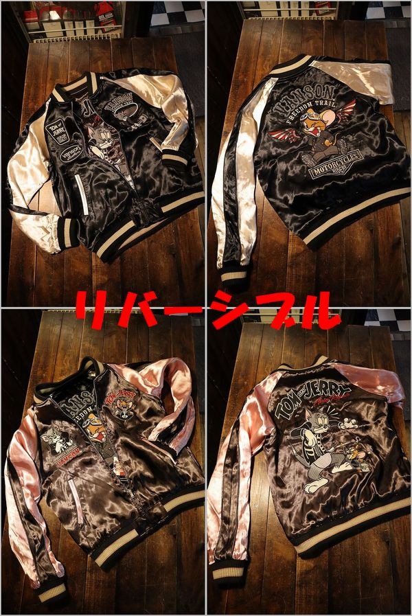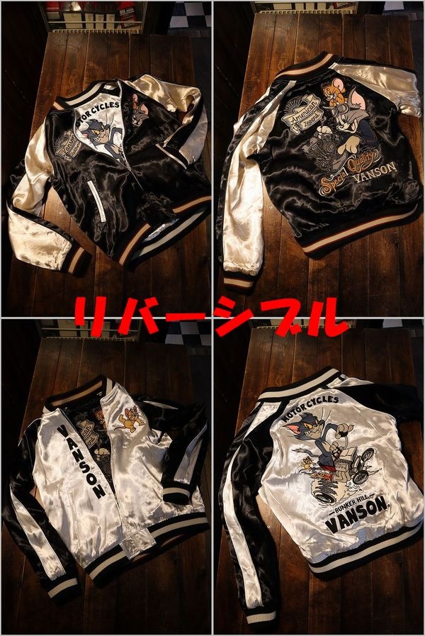 VANSON×Tom and Jerry トムとジェリーコラボ TJV-2242 刺繍 リバーシブルスカジャン