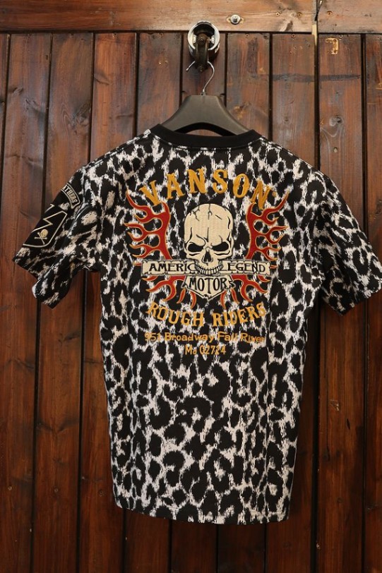 VANSON バンソン NVST-2305 天竺半袖Tee 刺繍スカルTシャツ レオパード