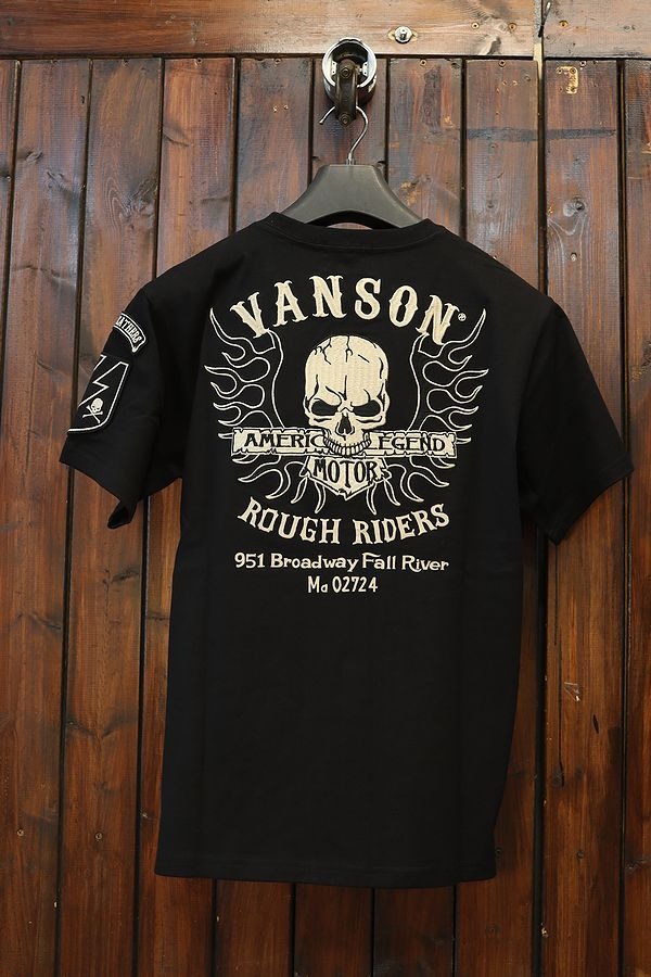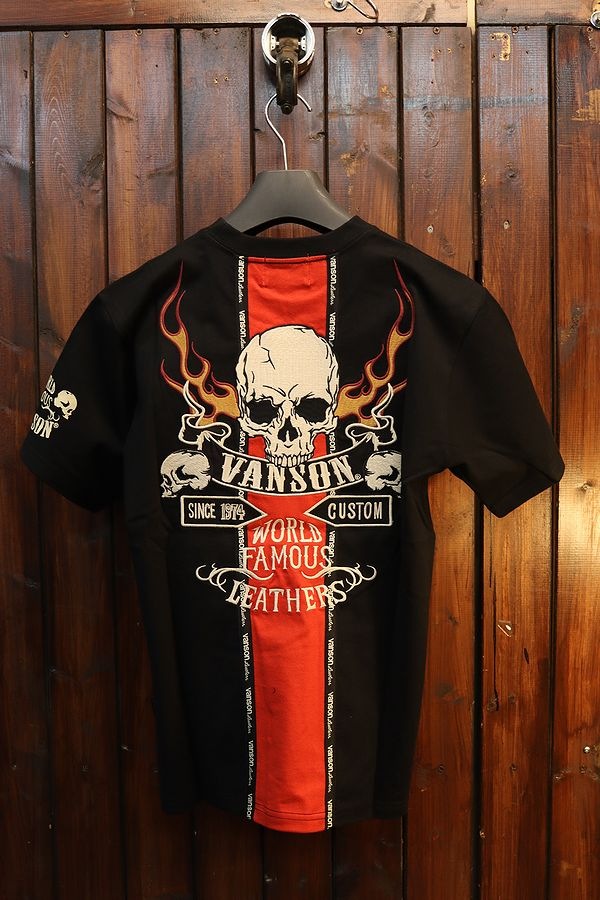 VANSON バンソン NVST-2305 天竺半袖Tee 刺繍スカルTシャツ ブラック