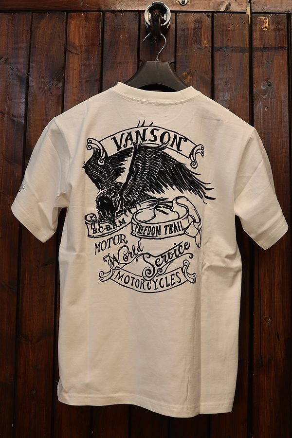 VANSON バンソン NVST-2301 天竺半袖Tee 天竺半袖Tee 刺繍イーグルTシャツ オフホワイト