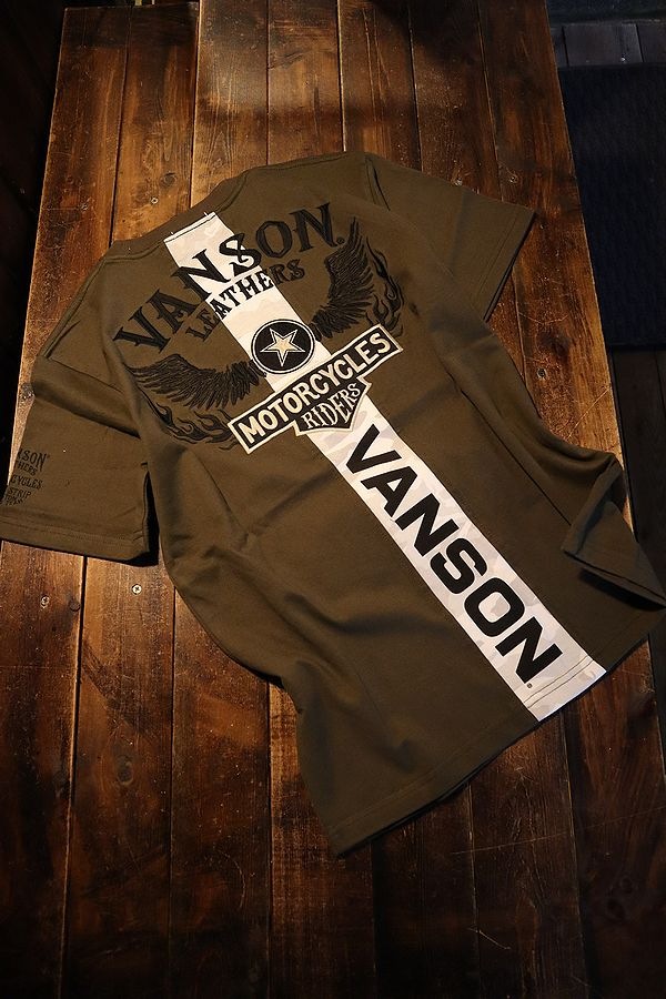 VANSON バンソン NVST-2215 天竺半袖Tシャツ ウイングスター刺繍Tシャツ オリーブ
