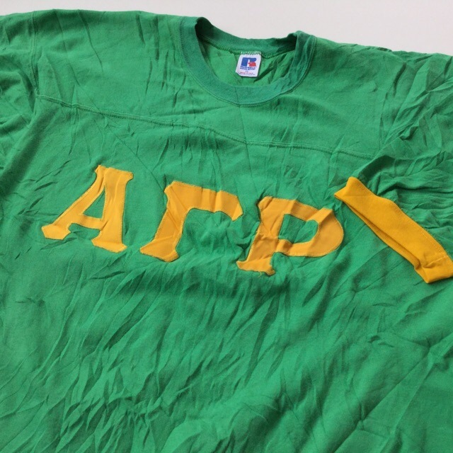 RUSSELL ATHLETIC ラッセル アスレチック オールド フットボールTシャツ7部丈 送料無料 メンズ XL/緑x黄 ア...