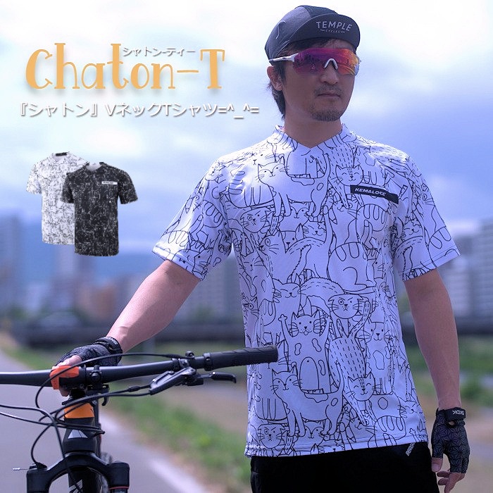 【送料無料】スポーツTシャツ『シャトン-T』ネコ好きのためのVネック速乾Tシャツ 2カラー MTB/トレイル/フィットネス/ジム ...
