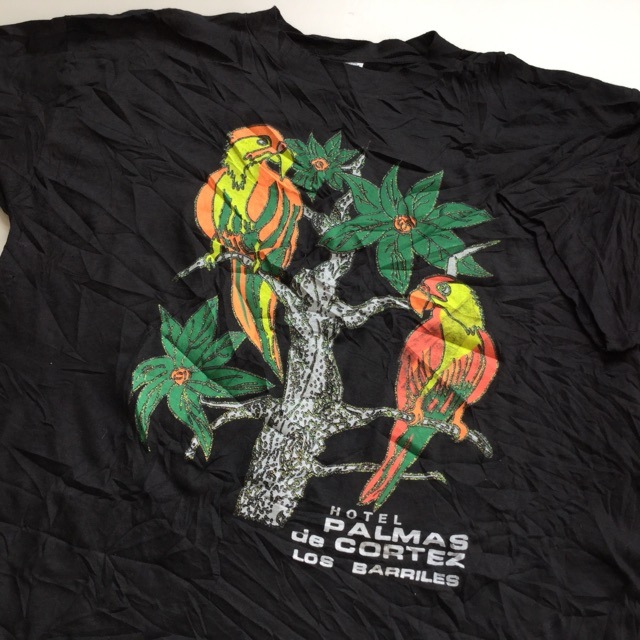 アメリカ古着 アニマルプリント 動物 半袖Tシャツ 送料無料 メンズ XL/黒・ブラック オーム 鳥 ラメプリント USA 古着卸...