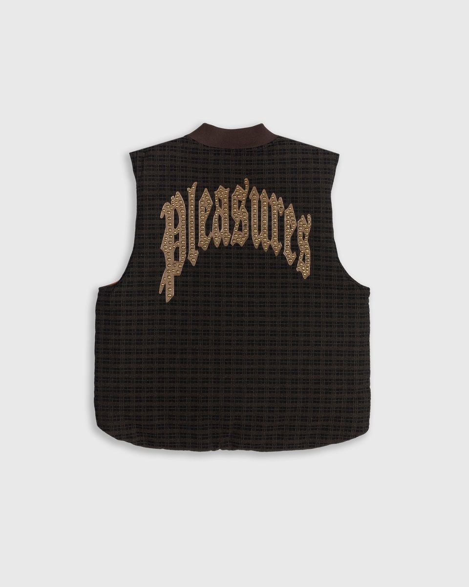 【PLEASURES/プレジャーズ】HORNS DENIM VEST ベスト / BROWN PLAID