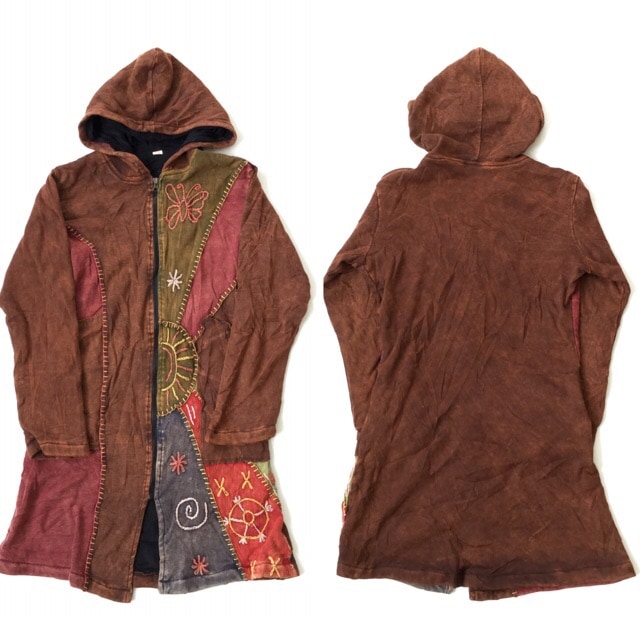 エスニックパーカー アメリカ古着 スウェット ジップアップフード 送料無料 レディース S-M/茶系 むら染め ライトジャケット ...
