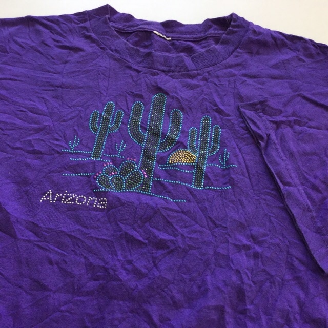 Arizona サボテン 半袖Tシャツ アメリカ直輸入 送料無料 XL程度/紫・パープル ビーズ USA ラメ 砂漠 サファリ 風...