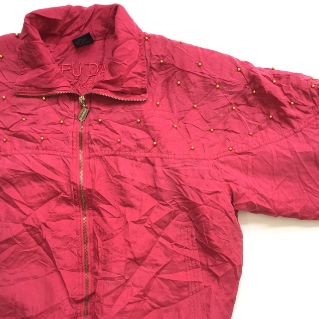 FUDA international アメリカ古着 シルクジャケット ジップアップジャケット 送料無料 レディース M/赤系 ビー...