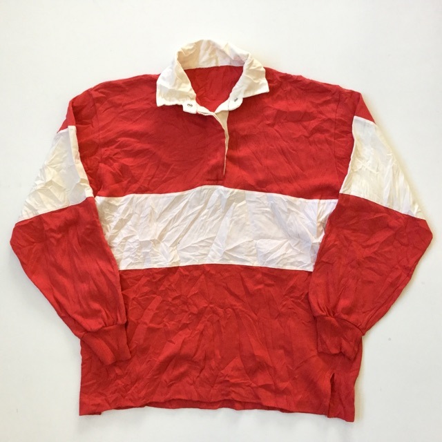 アメリカ古着 長袖ラガーシャツ ラグビーシャツ 送料無料 レディース L程度/オフホワイトxレッド 白x赤 ツートン アメリカ直輸...