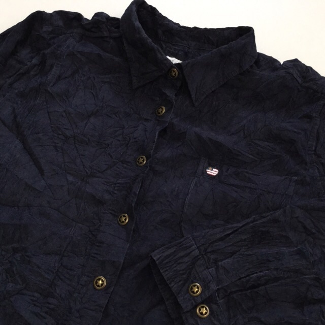アメリカ古着 長袖シャツ コーデュロイシャツ 送料無料 レディース 1X/紺・ネイビー USA 星条旗 アップル ハート 星 スタ...