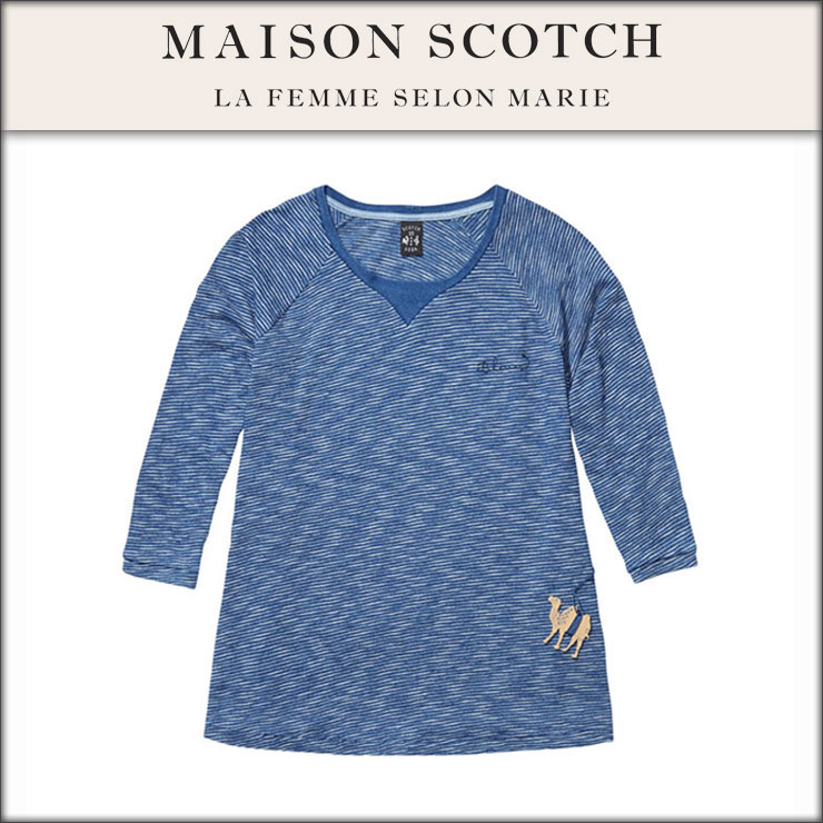 メゾンスコッチ MAISON SCOTCH 正規販売店 レディース 七分袖Tシャツ Striped indigo Tee in A...