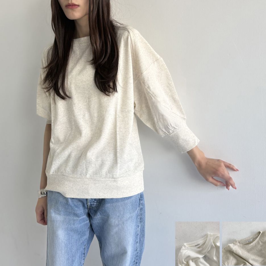 ガーゼフレンチテリーカーブ切替7分袖トレーナー