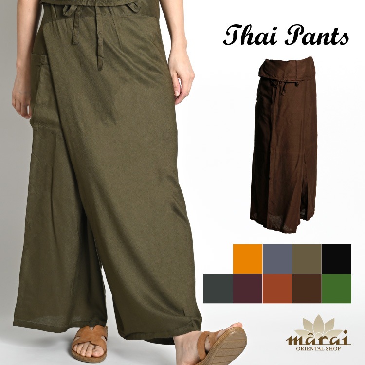 タイパンツ アジアンエスニックの定番。ストライプ織コットンタイパンツ フィッシャーマンパンツ ハカマパンツ 大きいサイズ フリーサ...