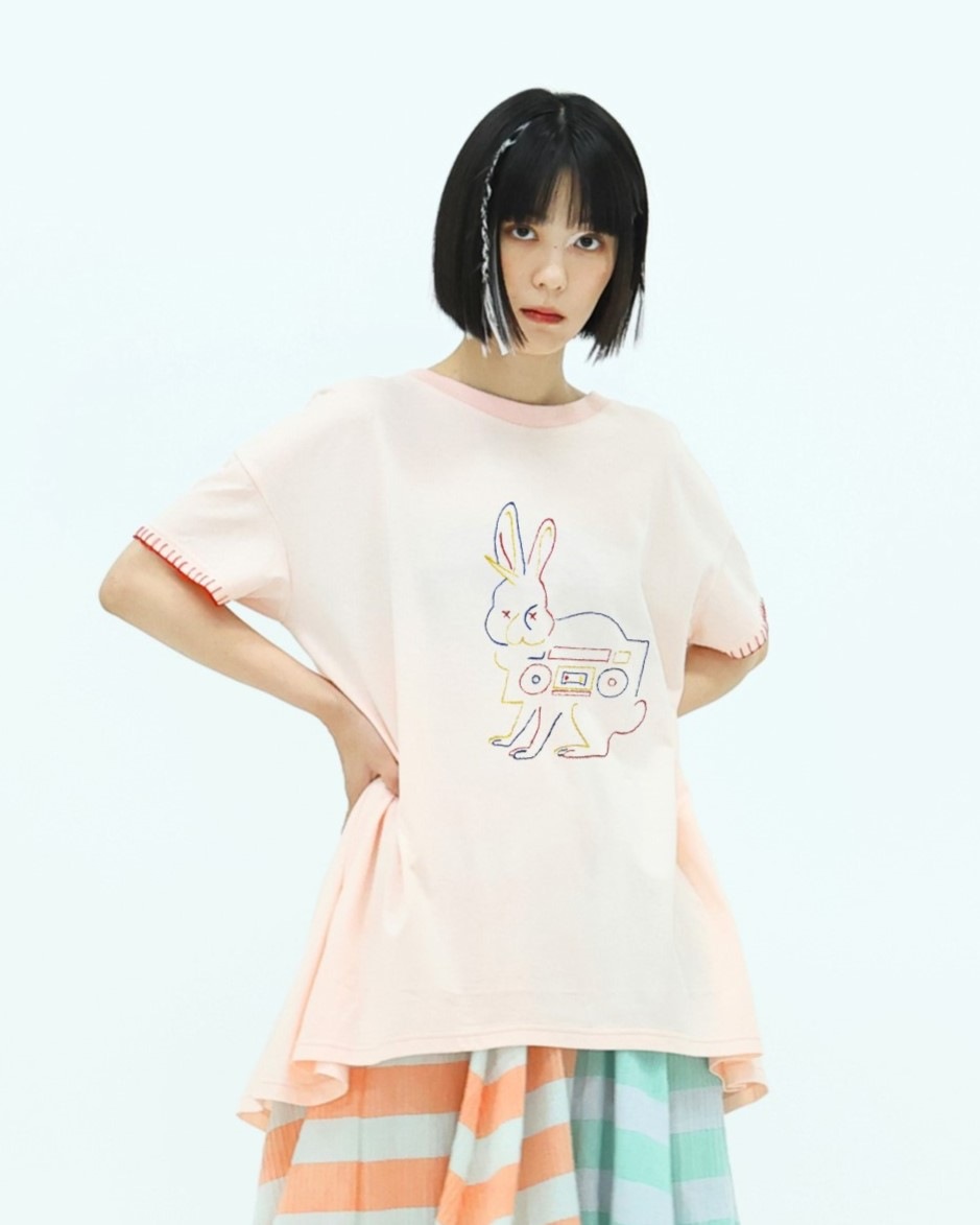 ★【BEDSIDEDRAMAベッドサイドドラマ】Blanket stitch T-shirt(bsd23SS-30B)