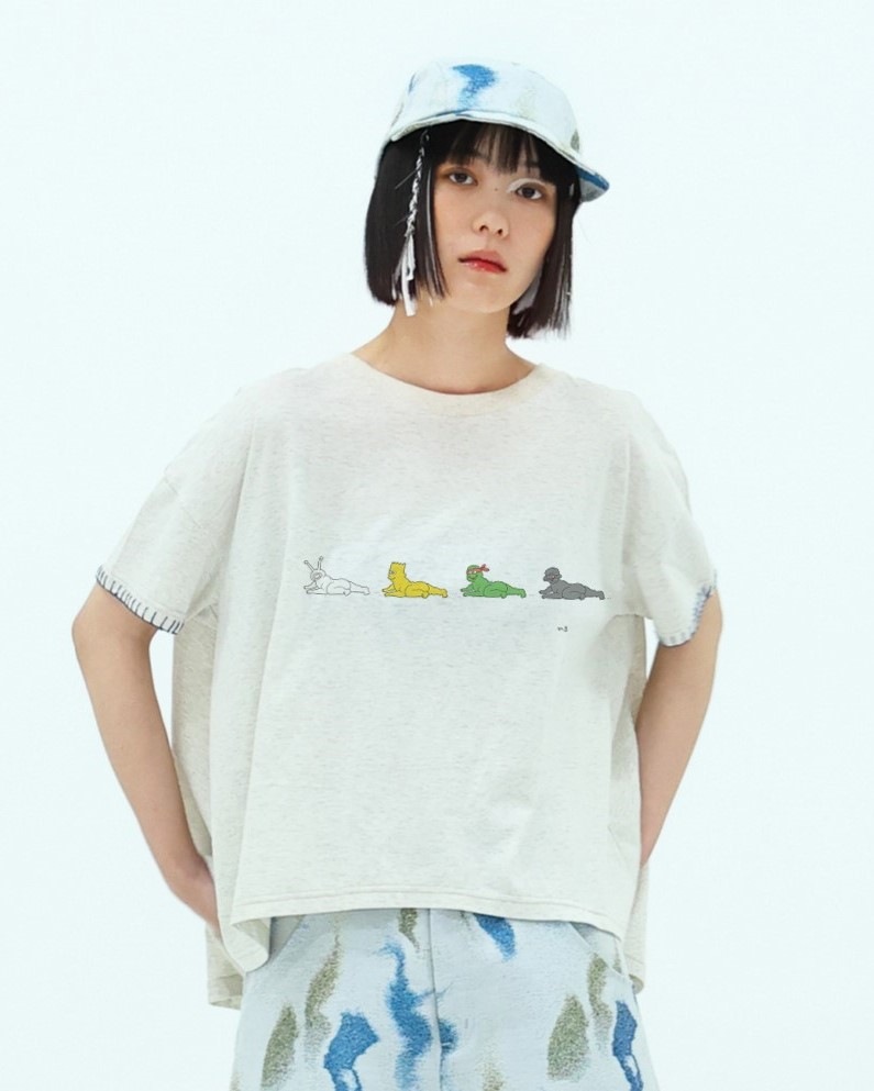 ★【BEDSIDEDRAMAベッドサイドドラマ】Blanket stitch T-shirt(bsd23SS-30C)